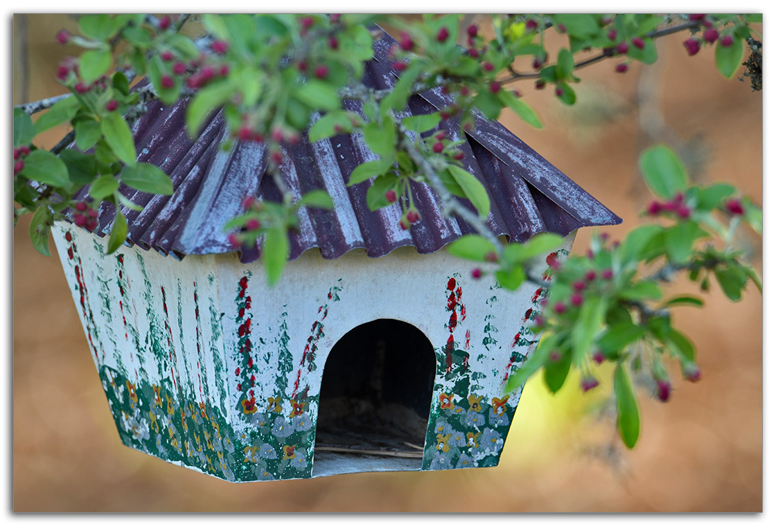 Someone asked me, “Why not just stop down to, say, f/22?” It’s a sort of a good question, except when you stop down to f/22 or more you are going to see softening of the image due to diffraction. Below are some examples of stopping down. Keep in mind, however, that each image you create using focus shift is going to depend on the lens you use, the subject matter and lighting. You can see from the above images that I was only able to get the birdhouse in focus in the first one at f/8, and that was using the hyperlocal distance for my focal point—it just wasn’t enough depth of field.